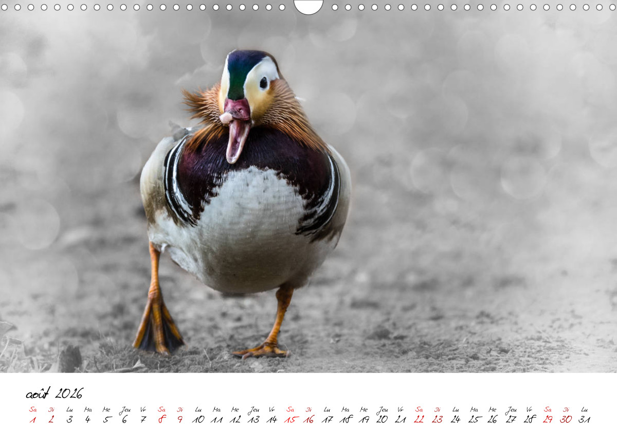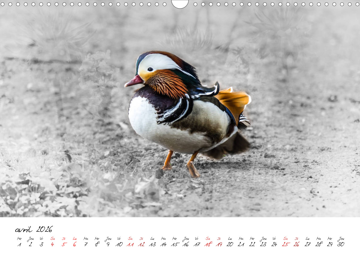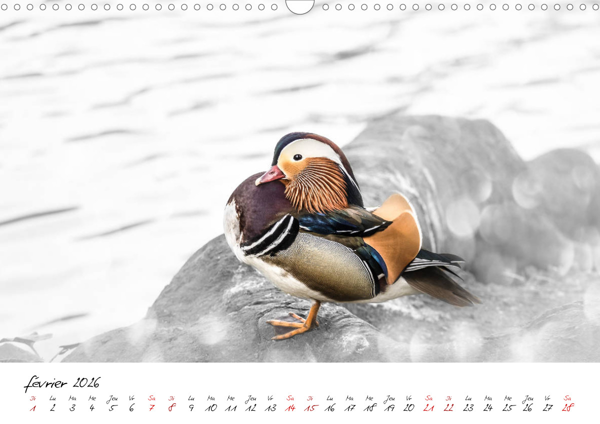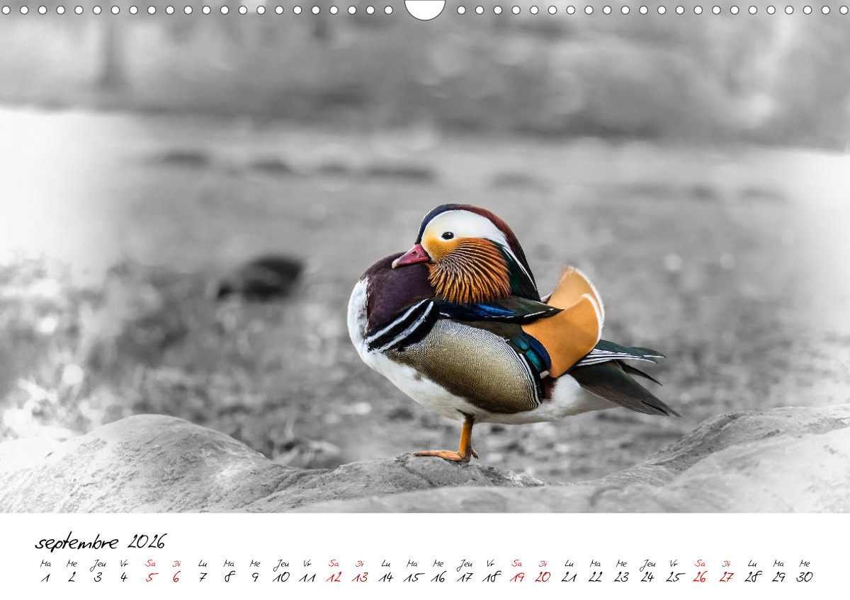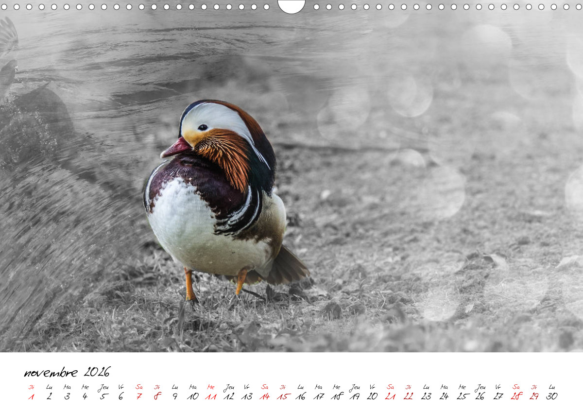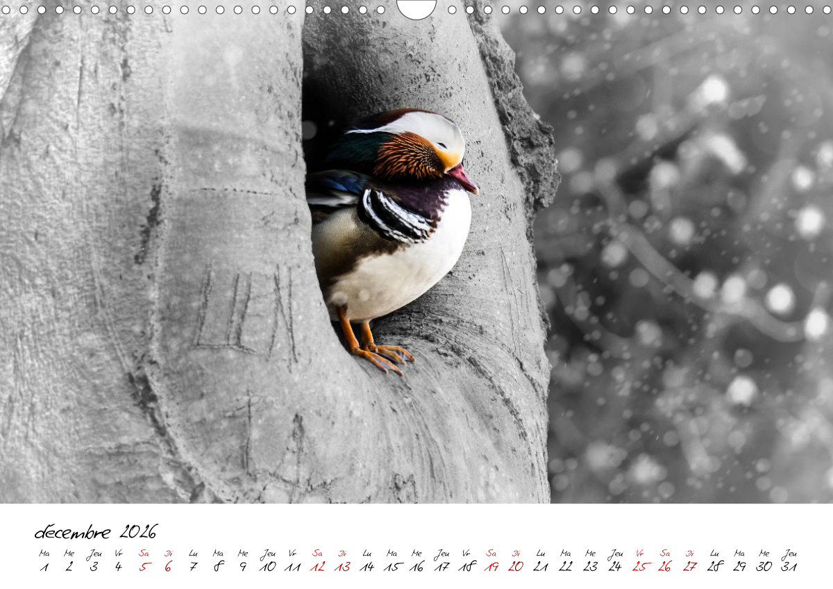 Auch in Europa wird die schöne Mandarinente immer heimischer. Mit monochromen Hintergrund ins Szene gesetzt, zeigen diese Fotos Emotionen dieser Schönheiten. Jeden Monat ein anderes Gefühl, ein anderes Abenteuer!