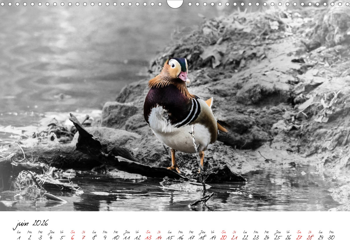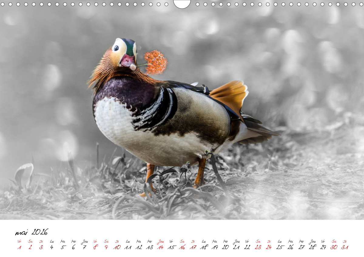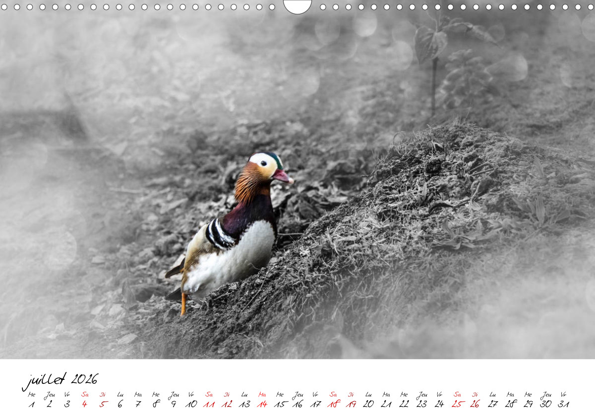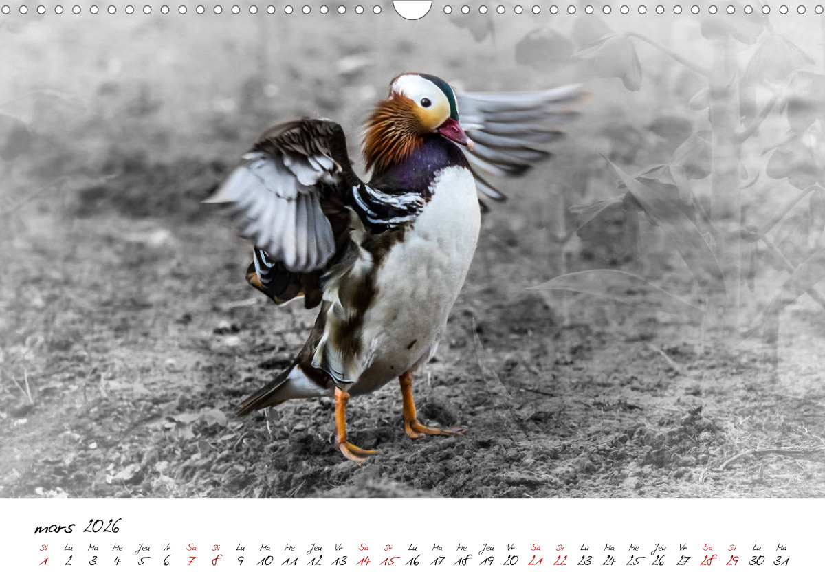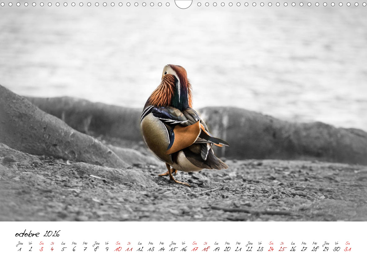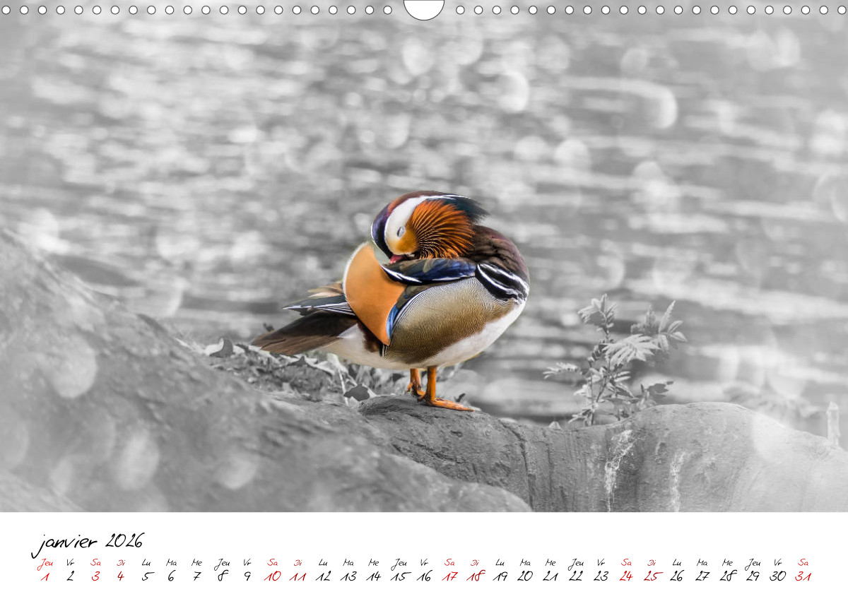 Auch in Europa wird die schöne Mandarinente immer heimischer. Mit monochromen Hintergrund ins Szene gesetzt, zeigen diese Fotos Emotionen dieser Schönheiten. Jeden Monat ein anderes Gefühl, ein anderes Abenteuer!