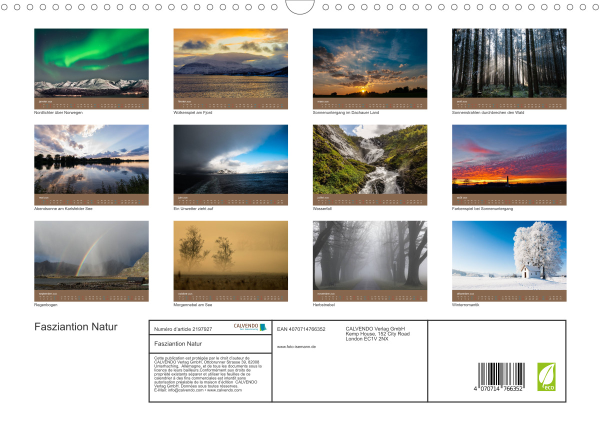 Sonnenuntergänge, Nordlichter, Wolken- und Sonnenspiele dominieren dieses Portfolio an natürlicher Farbenpracht und einmaligen Schönheit. Jeder Monat erleben Sie einen erneuten Genuss an Naturansichten.