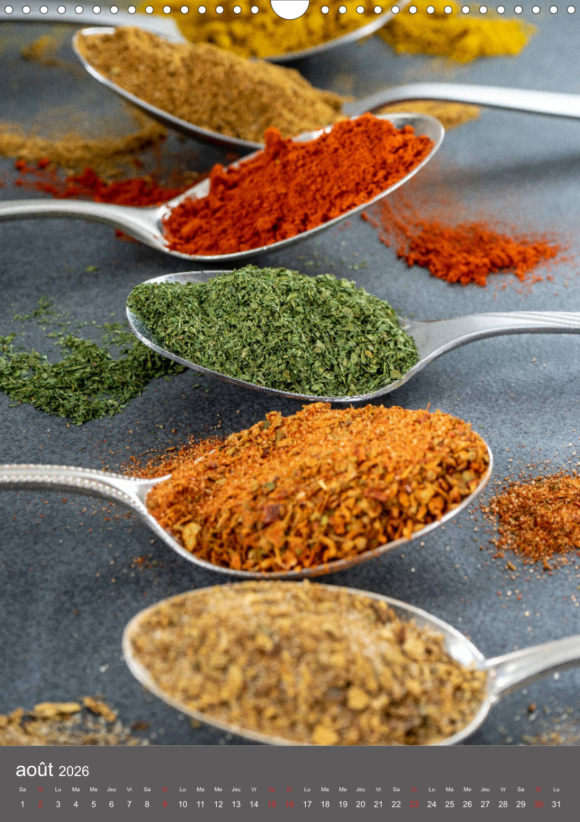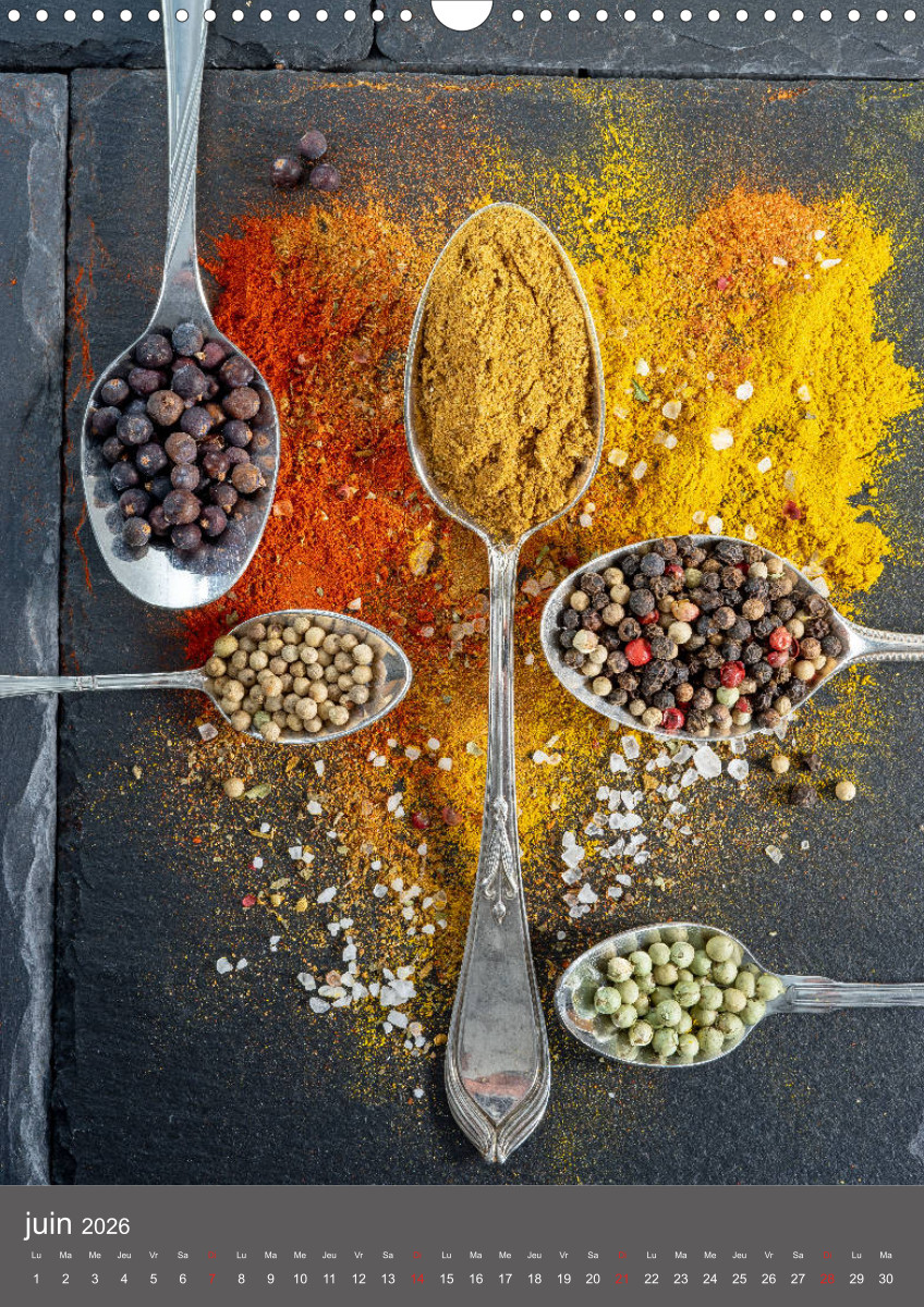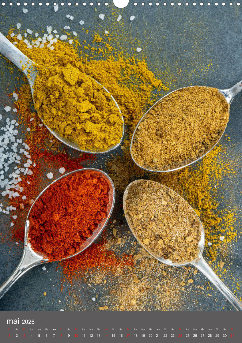 Hier dreht sich alles um Gewürze und Geschmack. Gewürze verwöhnen den Gaumen, erregen die Sinne, verfeinern unsere Speisen und dadurch unser Leben. Dieser qualitativ hochwertige Kalender gehört zur exklusiven CALVENDO Gold-Edition.