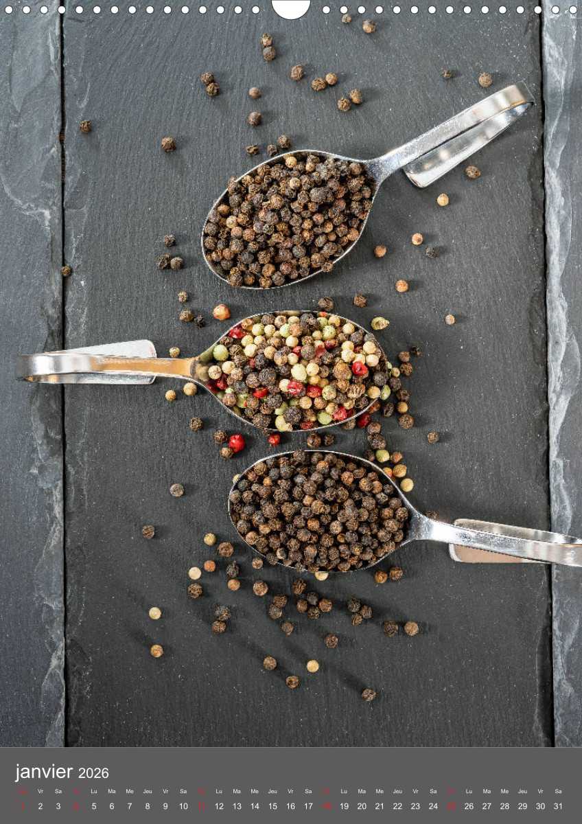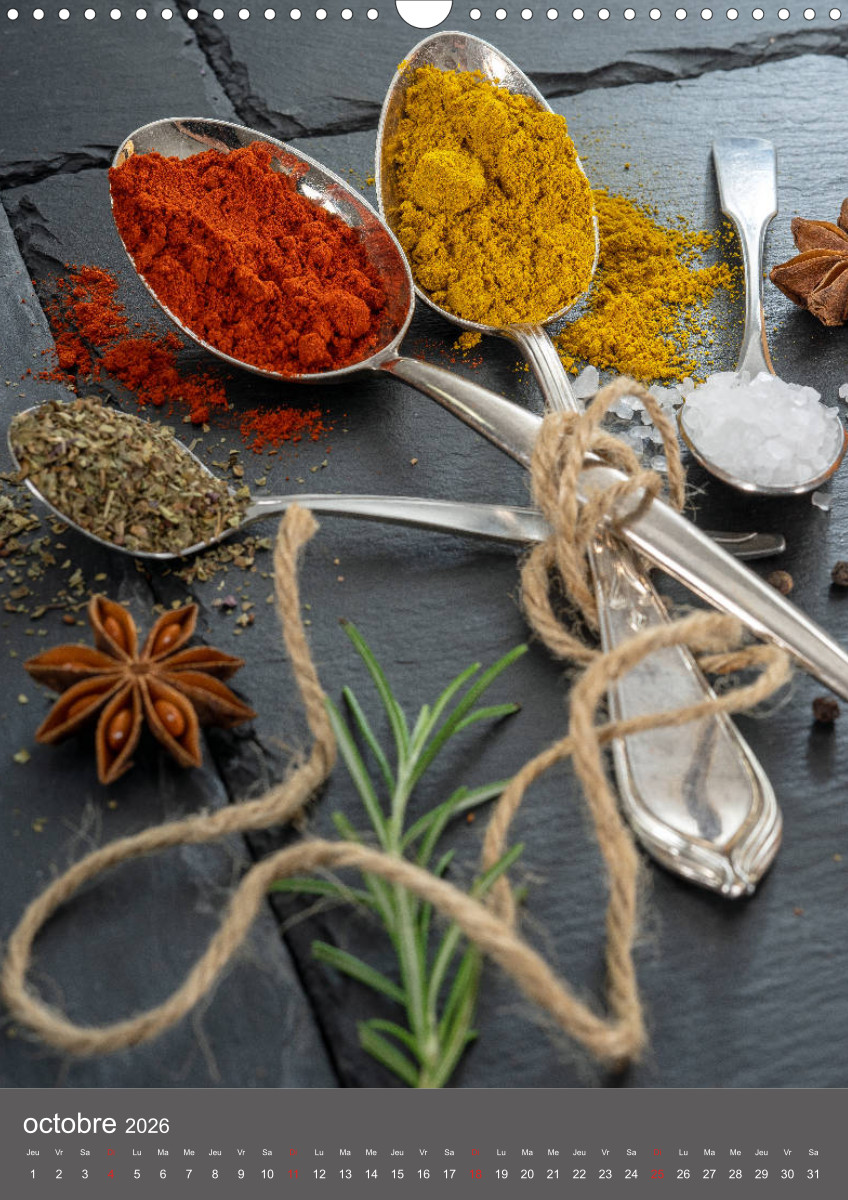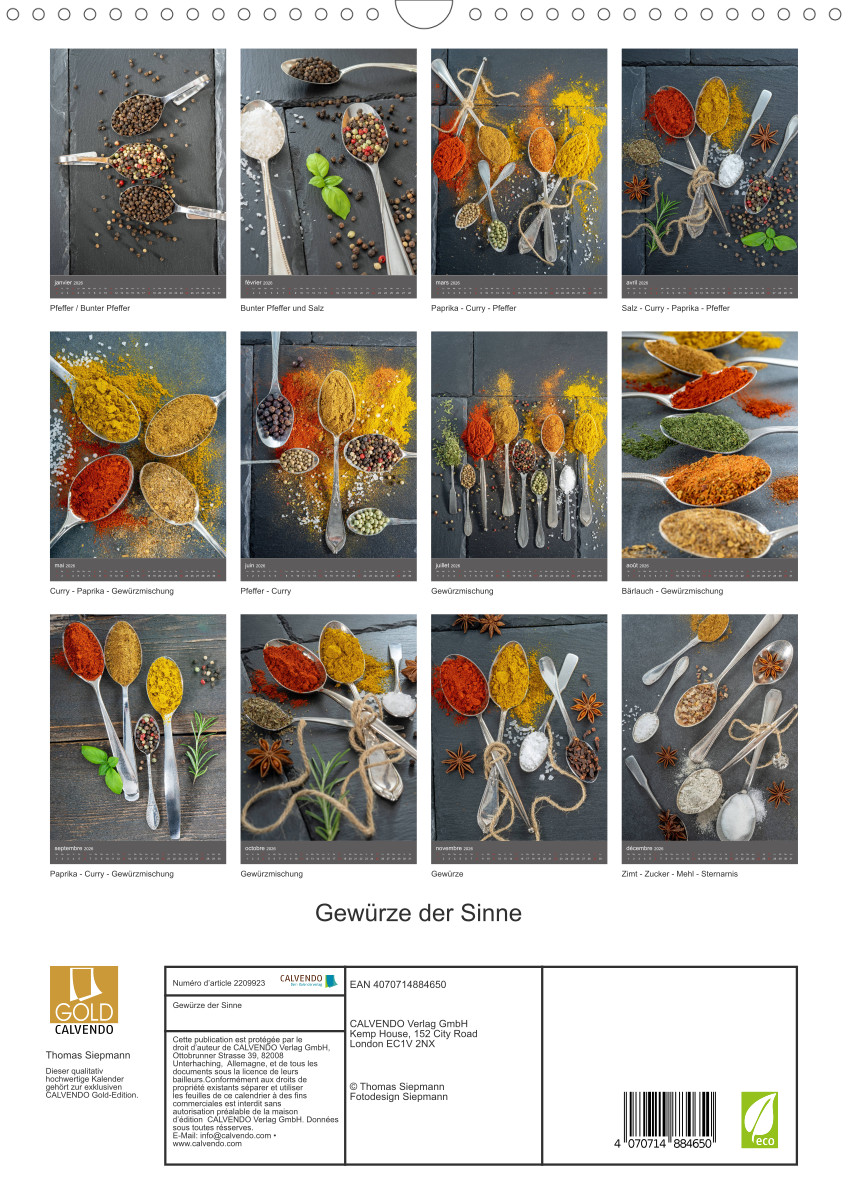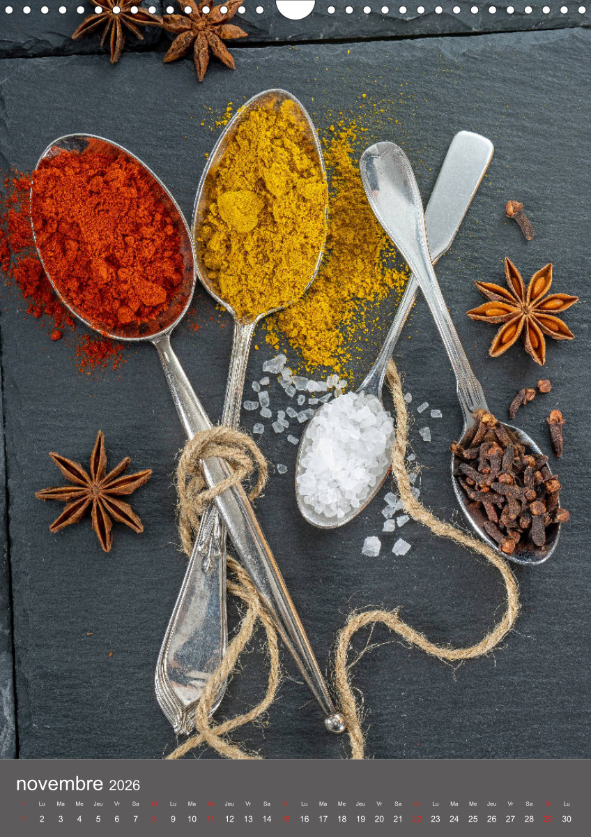 Hier dreht sich alles um Gewürze und Geschmack. Gewürze verwöhnen den Gaumen, erregen die Sinne, verfeinern unsere Speisen und dadurch unser Leben. Dieser qualitativ hochwertige Kalender gehört zur exklusiven CALVENDO Gold-Edition.
