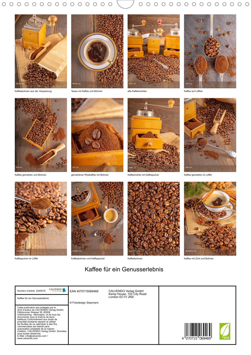 Kaffee ist ein schwarzes, koffeinhaltiges Getränk, das aus gerösteten und gemahlenen Kaffeebohnen und heißem Wasser zubereitet wird. Kaffee kann sich positiv auf Ihre Gesundheit auswirken. Der tägliche Genuss von Kaffee kann den Stoffwechsel anregen und kann Ihnen beim Abnehmen helfen. „Dieser qualitativ hochwertige Kalender gehört zur exklusiven CALVENDO Gold-Edition.“