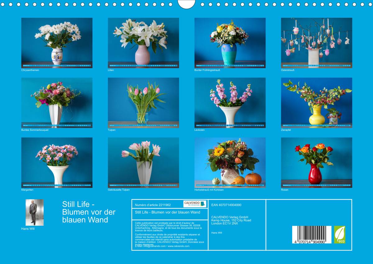 Die abgebildeten Blumensträuße sehen nicht nur wunderschön aus, sie laden auch zum Träumen ein. Prachtvolle Blütenbouquets und einfache Feldblumen, fotografiert von Hans Will, in einem dekorativem Jahreskalender. Eine neue Erinnerung in jeden Monat neu an den der den Kalender verschenkt hat. Als Blumenfreund/in können sie sich den Kalender aber auch selber in ihre Blumenecke hängen.