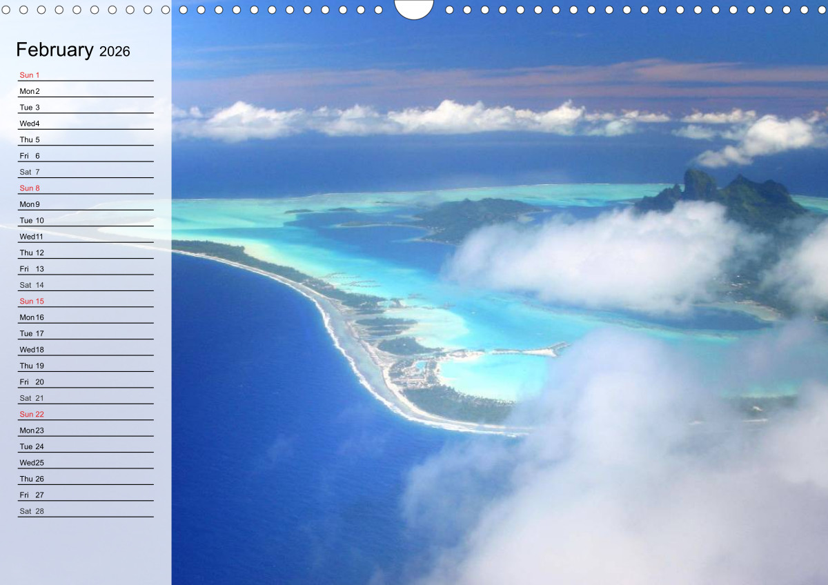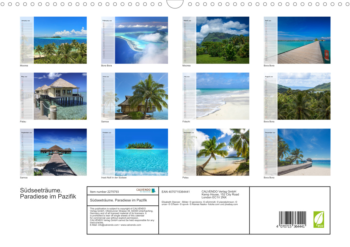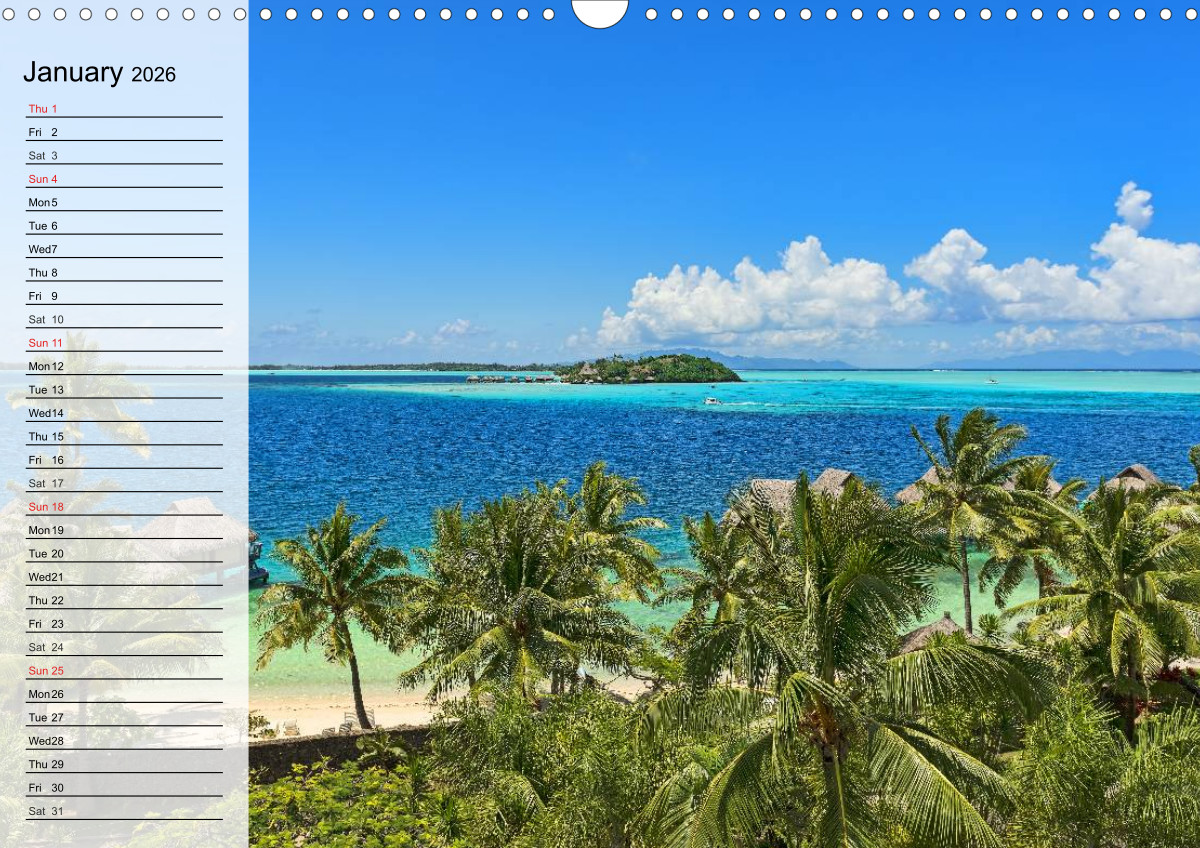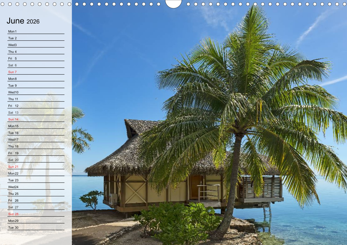 Die Südsee ist der Inbegriff des Paradieses. Glasklares Wasser, Sonne, weißer Sand und Palmenhaine. Dieser Planer weckt die Sehnsucht nach dem Garten Eden und einem Aufenthalt unter der heißen Sonne im Südpazifik.