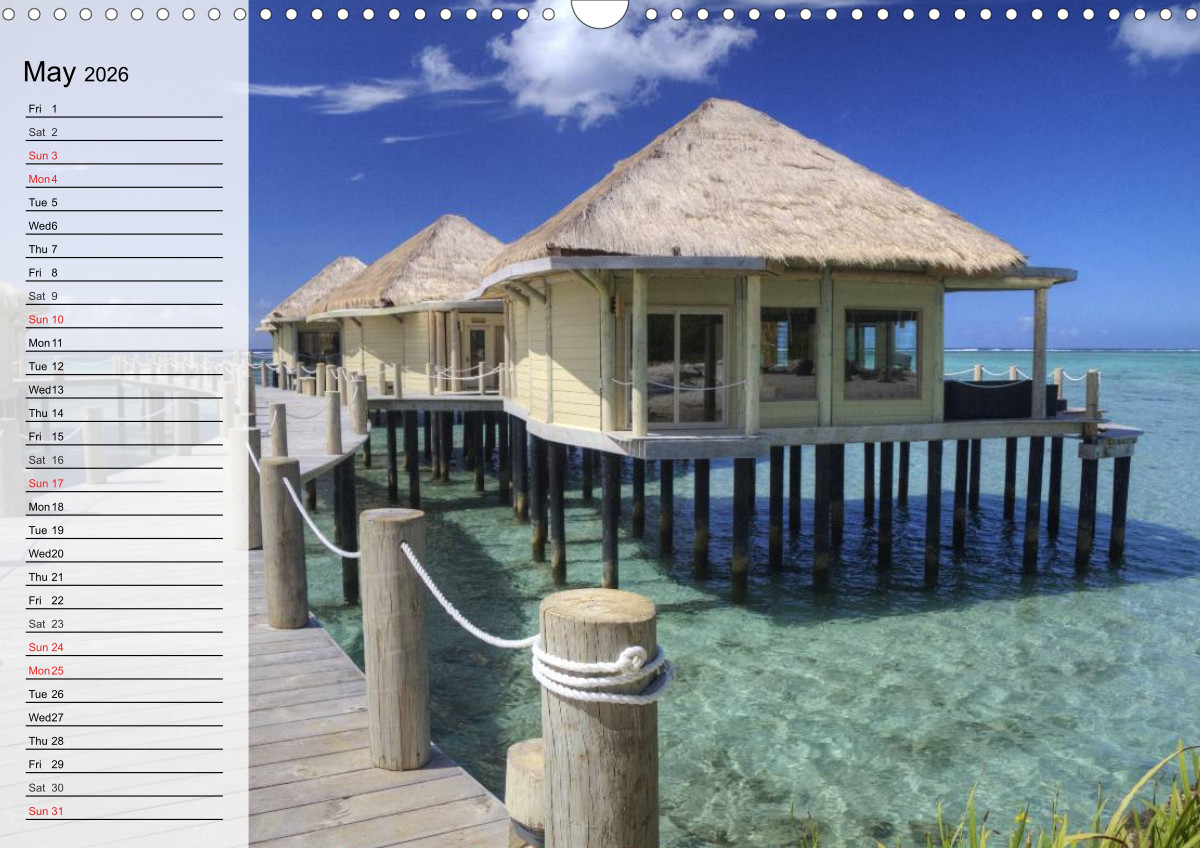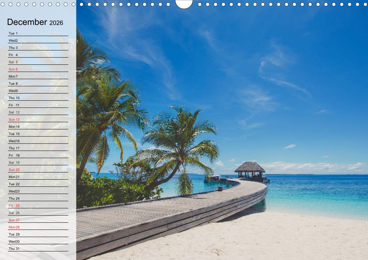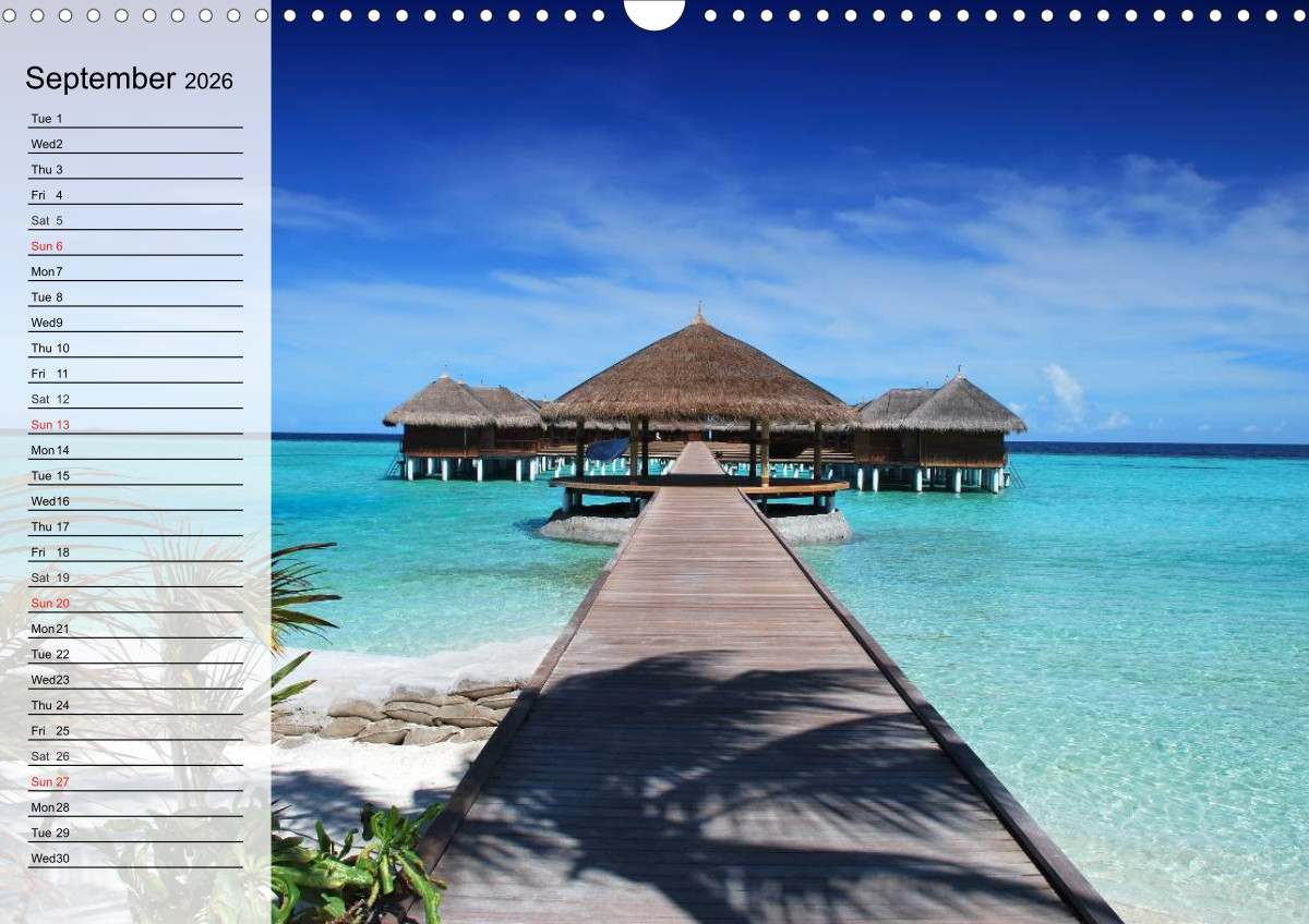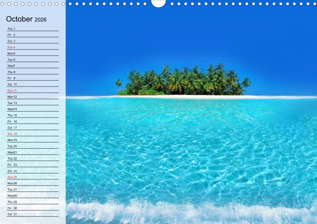 Die Südsee ist der Inbegriff des Paradieses. Glasklares Wasser, Sonne, weißer Sand und Palmenhaine. Dieser Planer weckt die Sehnsucht nach dem Garten Eden und einem Aufenthalt unter der heißen Sonne im Südpazifik.