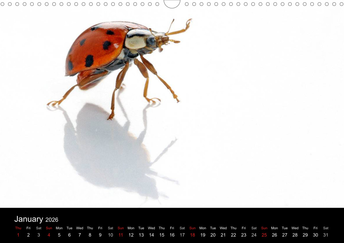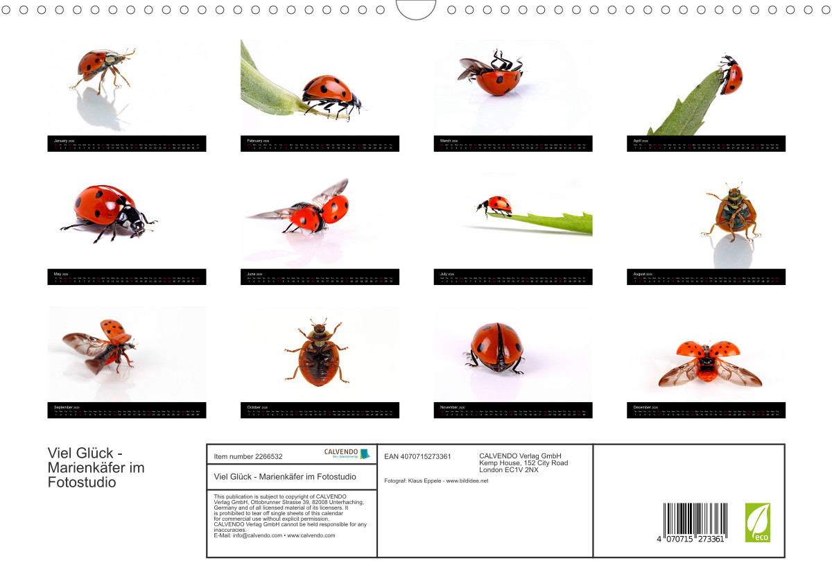 Marienkäfer bringen Glück. Und wenn es sich um so agile, gelenkige und freundliche Marienkäfer wie in diesem Kalender handelt, dann allemal. Oder haben Sie bisher einen winkenden Marienkäfer gesehen?