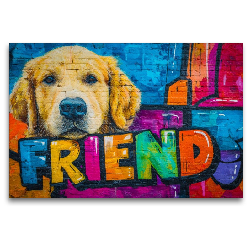 Diese ausdrucksstarke Illustration verbindet die Kraft eines treuen Hundeblicks mit modernem Graffiti- und Street-Art-Stil. Die leuchtenden Farben, die urbane Struktur stehen für Loyalität, Stärke und eine tiefe Verbundenheit, die ein Leben lang hält. Ein echtes Statement für alle, die Hunde lieben und moderne Wandkunst schätzen. Ob als Blickfang im Wohnzimmer, Büro oder Loft, diese Illustration zieht Aufmerksamkeit auf sich und erzählt eine emotionale Geschichte. Auch ideal als besonderes Geschenk für Hundefreunde und Kunstliebhaber.