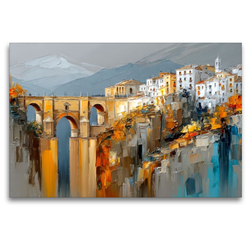 Europas Metropolen in einer modernen, kunstvollen Interpretation. Ausdrucksstarke Impasto-Technik und warme Gelb- und Orangetöne, ergänzt durch feine Weiß-, Blau- und Grauakzente, verleihen den abstrakten, impressionistisch‑expressionistischen Motiven eine moderne, „schicke“ Eleganz. Ein ideales Geschenk, das durch den Flair europäischer Städte und moderne Kunst begeistert.