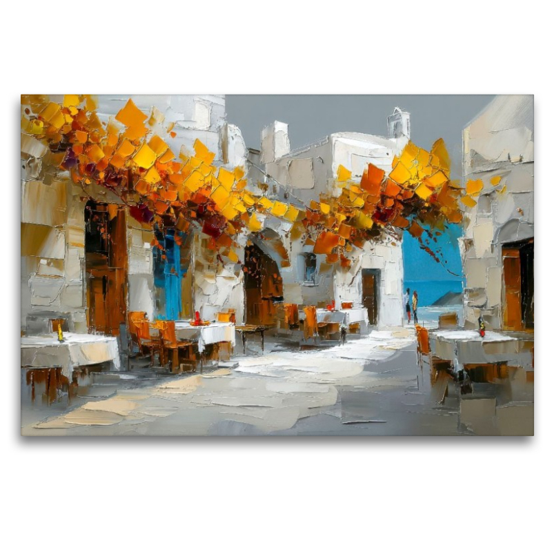 Europas Metropolen in einer modernen, kunstvollen Interpretation. Ausdrucksstarke Impasto-Technik und warme Gelb- und Orangetöne, ergänzt durch feine Weiß-, Blau- und Grauakzente, verleihen den abstrakten, impressionistisch‑expressionistischen Motiven eine moderne, „schicke“ Eleganz. Ein ideales Geschenk, das durch den Flair europäischer Städte und moderne Kunst begeistert.