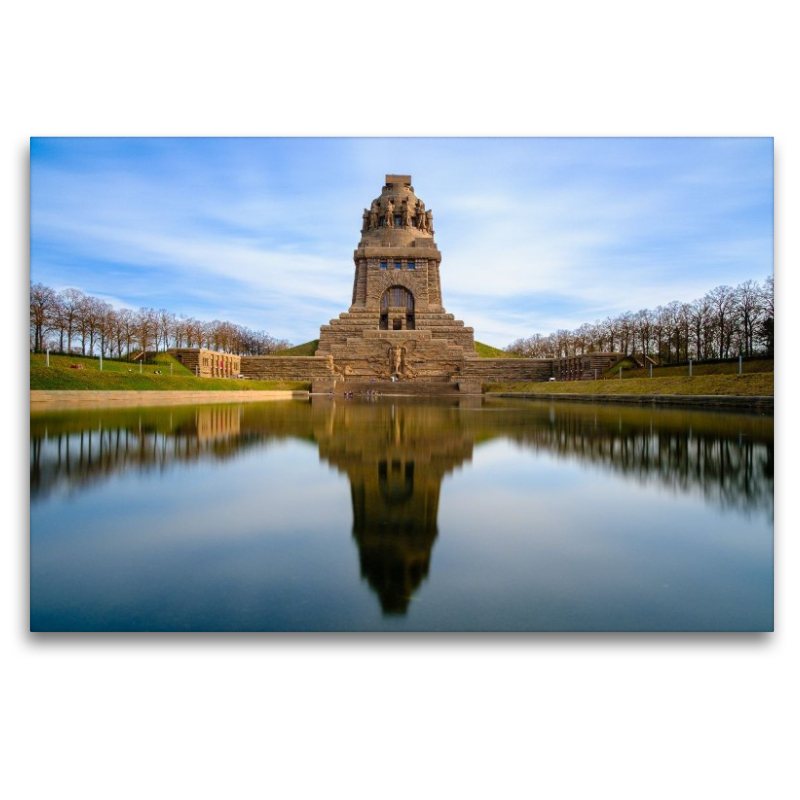 Ein Bild des Völkerschlachtdenkmals zeigt die monumentale Wucht dieses Leipziger Wahrzeichens. Der massive Steinbau ragt kraftvoll in den Himmel, umgeben von stiller Weite. Licht und Schatten betonen seine strenge Architektur und verleihen dem historischen Ort eine eindrucksvolle, fast ehrfürchtige Atmosphäre.