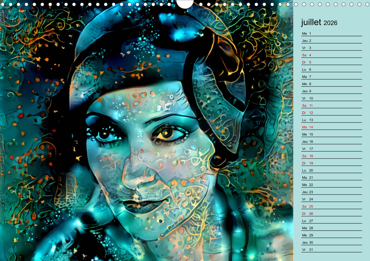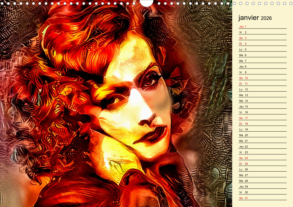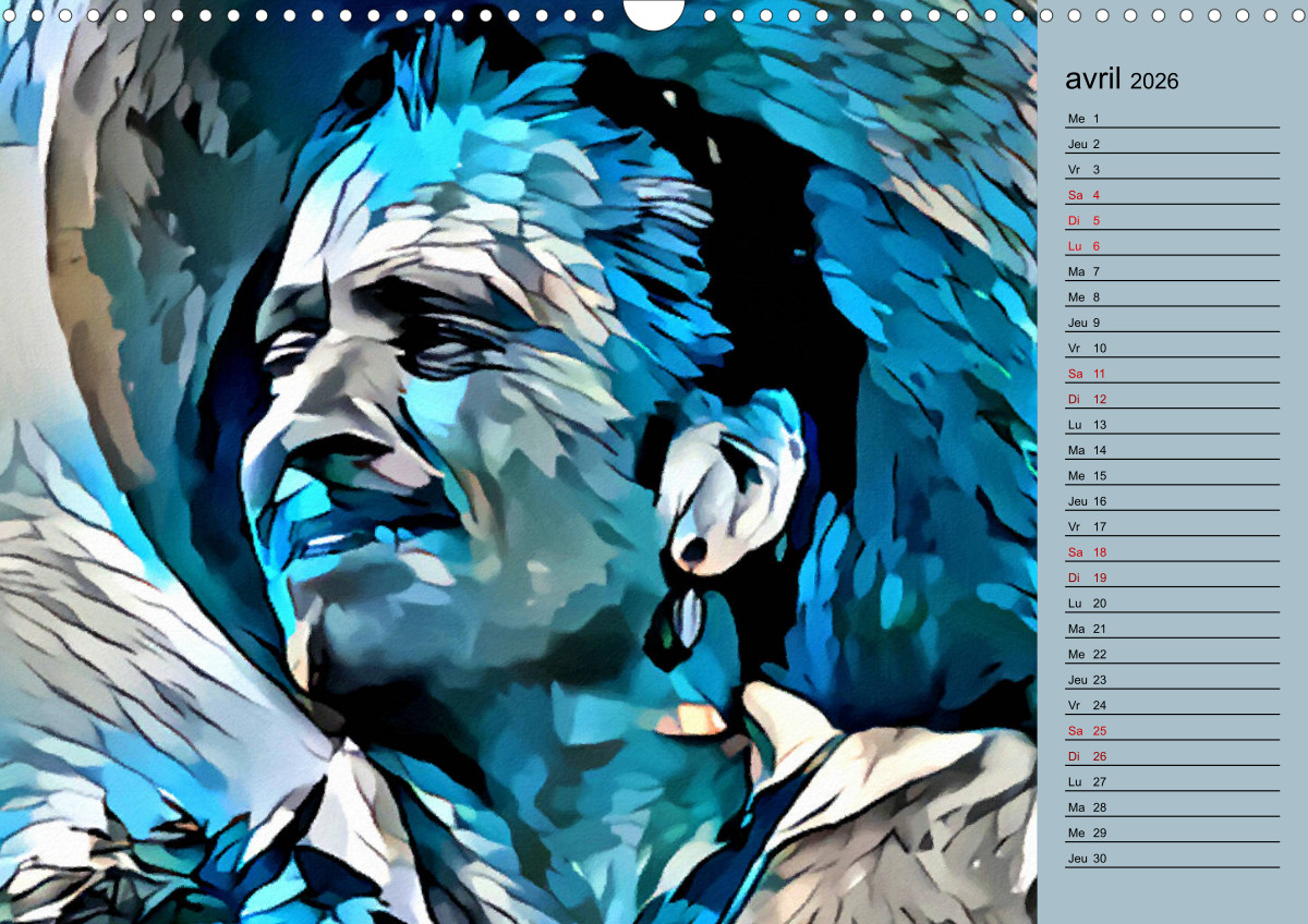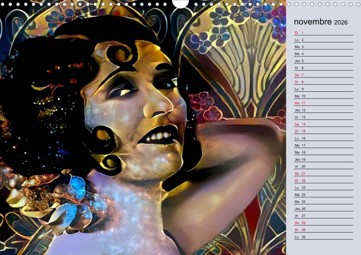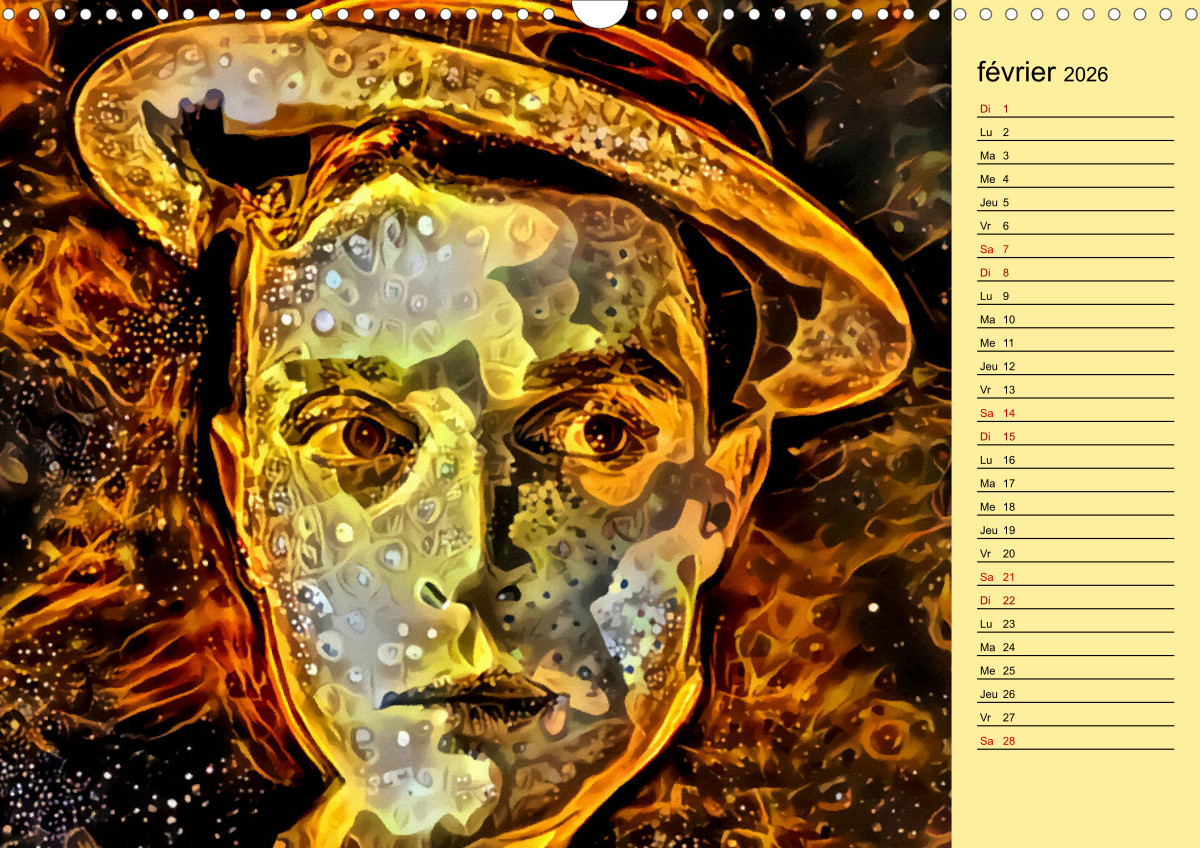 Erinnern wir uns daran, wie die unvergesslichen Legenden der Schwarzweißfilmzeit Spannung, Vergnügen und Emotionen in unser Leben brachten. Obwohl sie uns vollkommen monochrom und stumm erschienen, schenkten sie uns doch die farbenprächtigsten Momente, während wir ihr Schauspiel auf der Kinoleinwand genossen. Die Portraits in diesem Kalender sind ein Versuch, etwas Farbenpracht an sie zurück zu geben – einfach nur zum Dank.